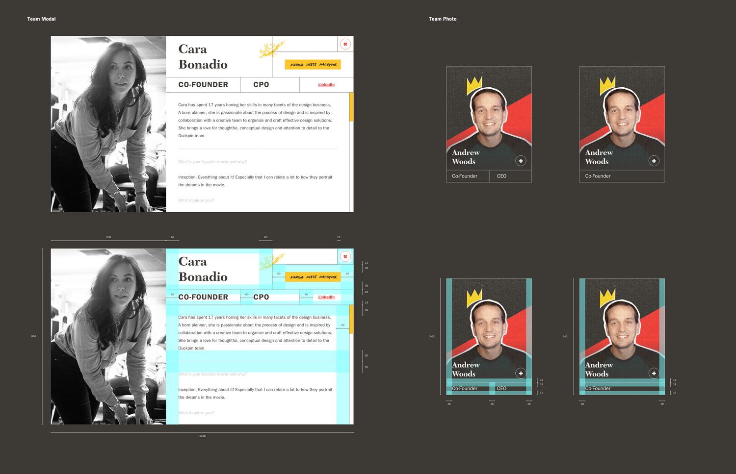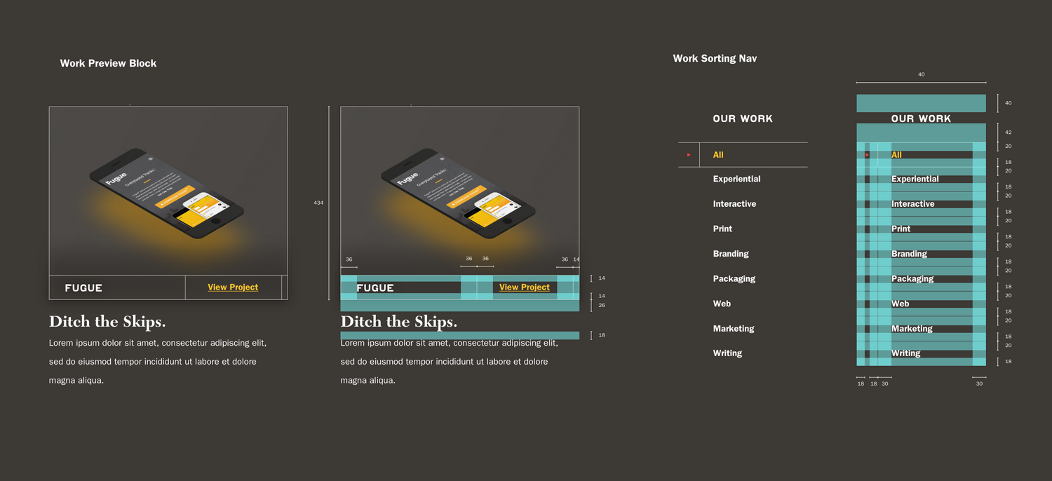 This design system explores a proposed redesign of the Duckpin website incorporating new branding and structure. I worked to outline spacing rules, new buttons, and components for everything from showcasing the work to reading the blog. The desire was to create a system that had some personality while still letting the client branding work shine through. This new system was also optimized to be more responsive and friendlier to the growing mobile traffic to the site.