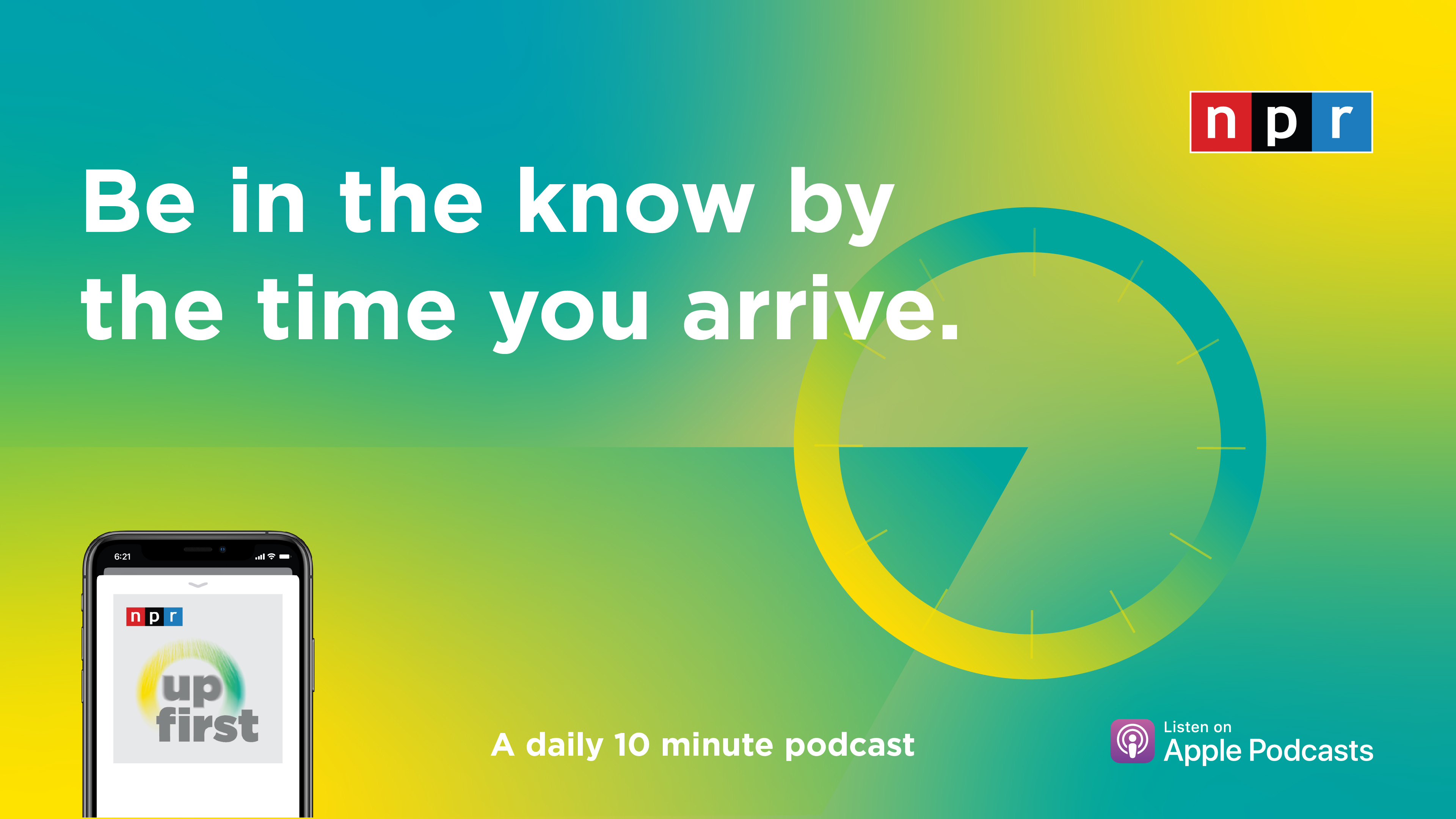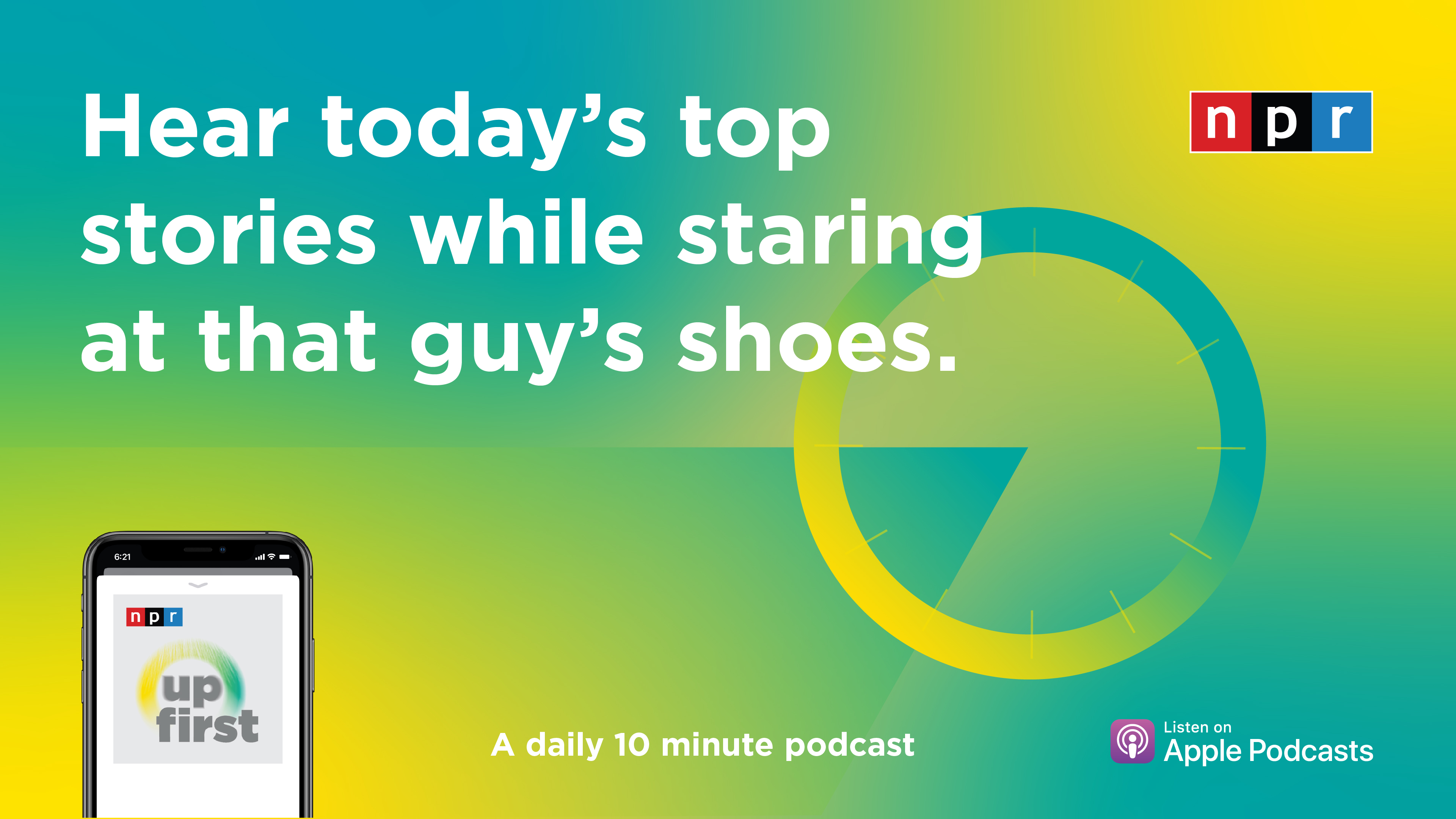 While at NPR, I worked on an out-of-home campaign for Up First, NPR's flagship short morning news program. Working with editors and copywriters, we settled on a clock motif that played on the gradient and round portion of the logo design. On digital billboards, the ads showed a subtle gradient variation. In print on DC metro and BART stations, the type was set to be punchy and visible from a distance. The designs directed users to Apple Podcasts, where it consistently ranks among the top 20 U.S. podcasts.
