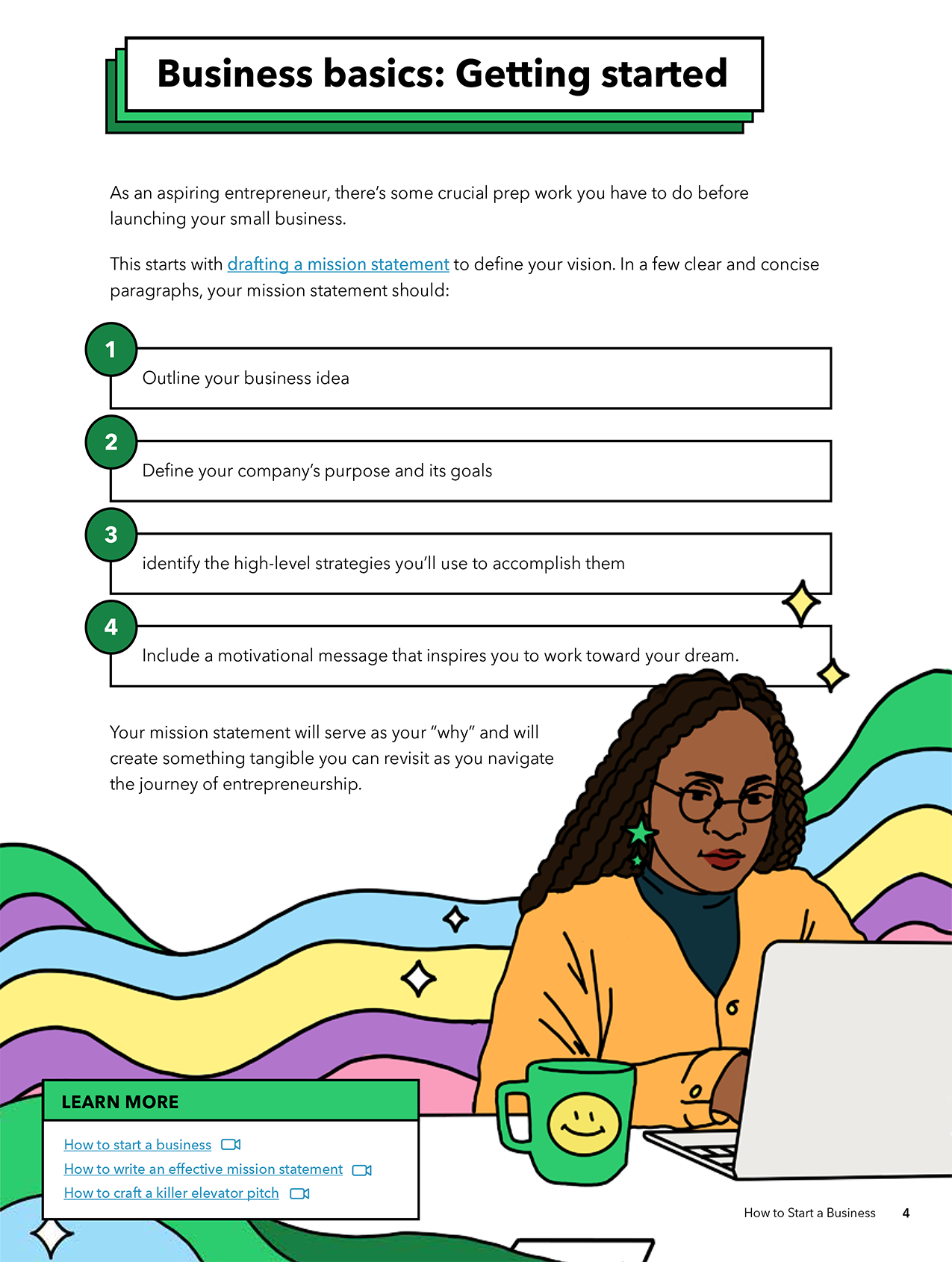 Quickbooks approached me to design a fully illustrated e-book targeted at new small business owners. The timeline was short (they wanted the e-book to be ready for an upcoming special event in two weeks) and I hit the ground running. I sent sketches, incorporated feedback, refined the design based on the client provided moodboards, brand guidelines and copy. I made the e-book fully interactive so that it would be a valuable tool for small business owners to fill out along the way. Later, I translated the e-book into multiple languages. I even got a shout out from Pit Bull at the event where the e-book debuted. This was one of the most rewarding projects of my career and I love the way it turned out!